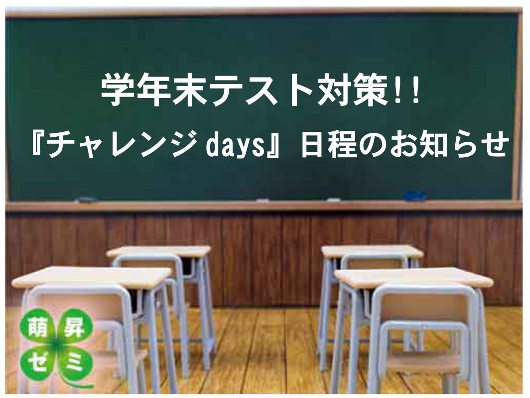 萌昇ゼミではテスト対策「チャレンジdays」を実施します。