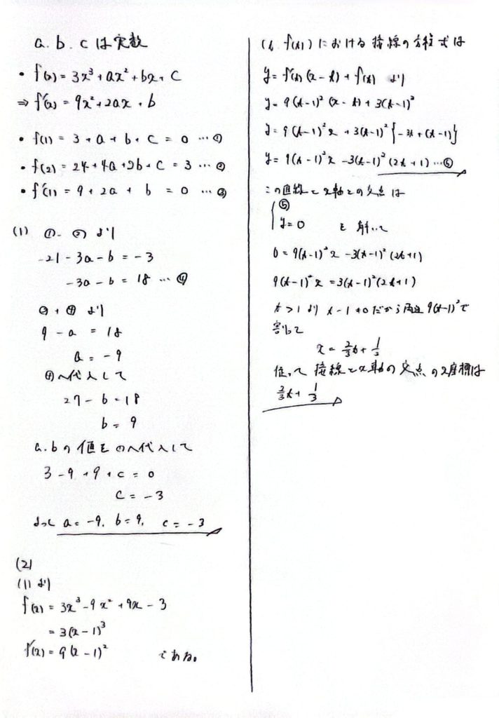 2ではf(x)=3(x-1)3に気づけると接線の方程式を求める際に楽ができますね!
