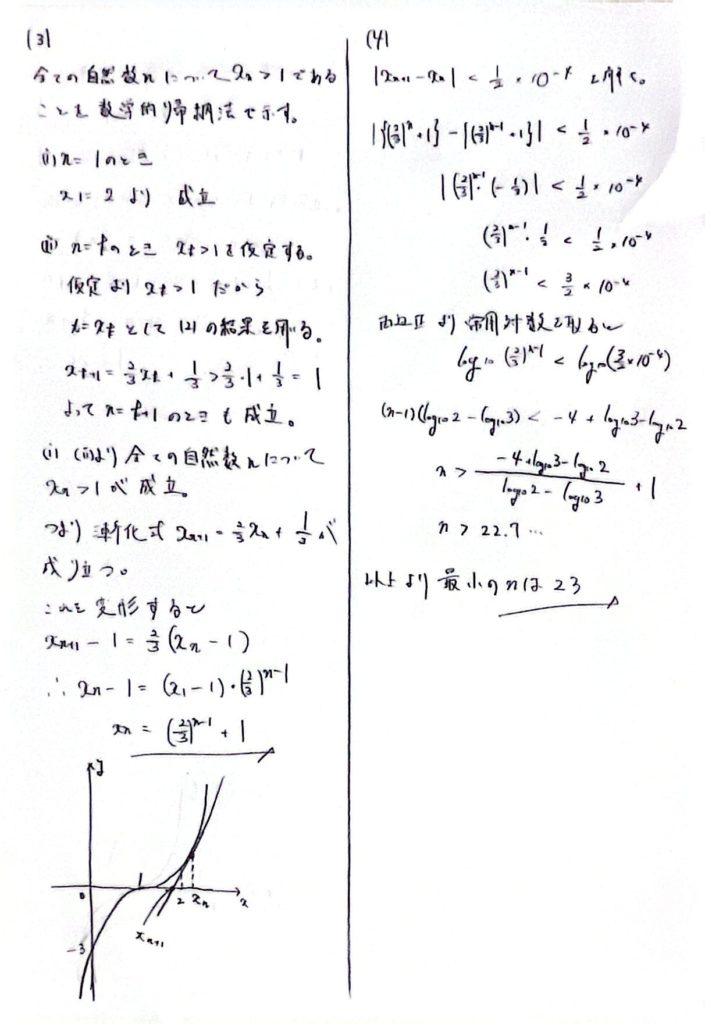 3の冒頭では2のtと同条件にするべく,xn>1であることを示してます